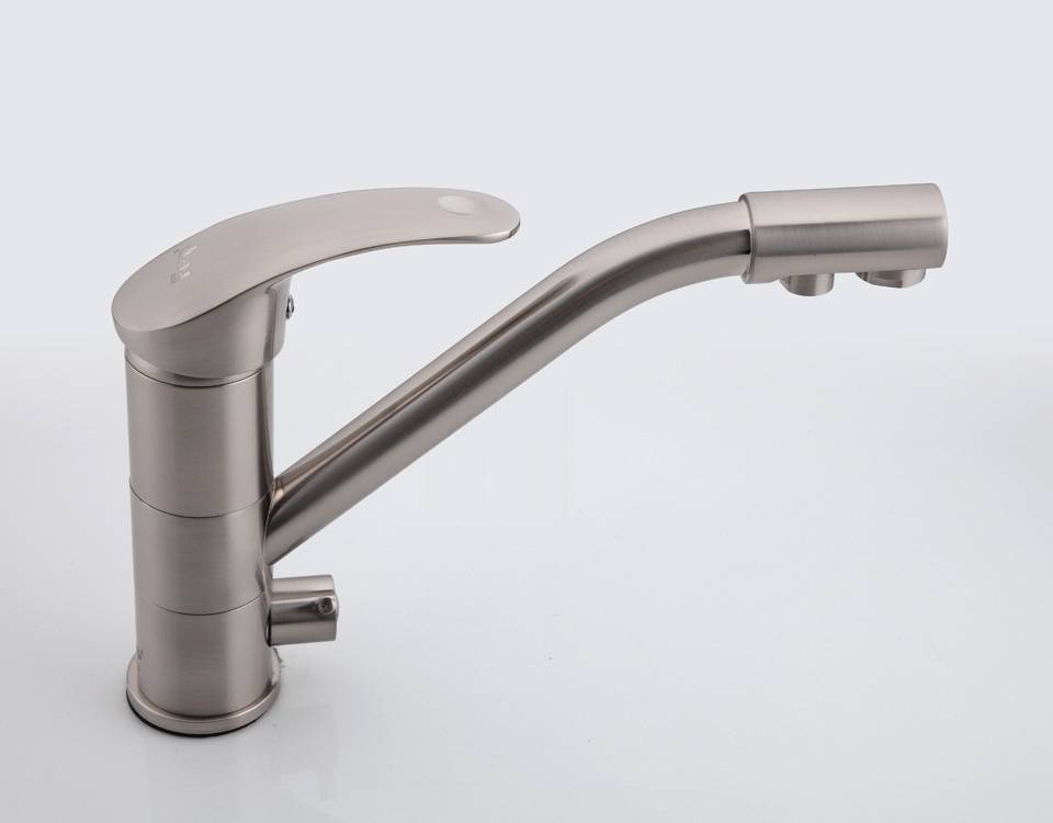 - Из стали. Смесители из нержавеющей стали встречаются реже, так как стоят дороже латунных моделей. В остальном они хороши и надежны: не ржавеют, устойчивы к воздействию водной среды, легки в уходе и экологичны.