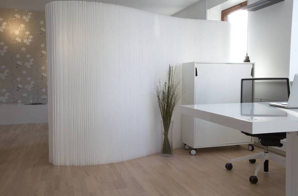 Такие перегородки могут быть изготовлены из разных материалов: от пластика до бумаги. А сама поверхность может быть однотонной, цветной или резной.