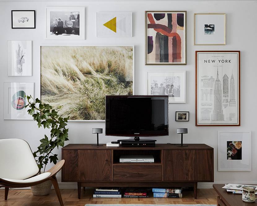 Снимки в рамках вокруг телевизораИсточник www.tvnosaci.com