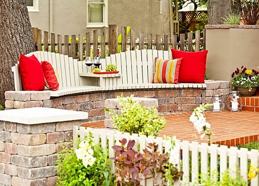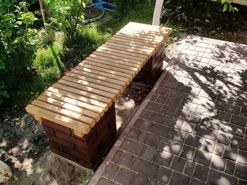 Альтернативный вариант – скамейка, основание которой создается из кирпичной кладки. Материалы, необходимые для работы: