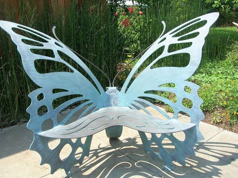 - Для создания металлической скамейки выбор стоит между тяжелой, но прочной ковкой или легкими трубами (причем металл бывает разным не только по форме, но и по составу – сталь обычная, сталь нержавеющая, бронза и т.д.)