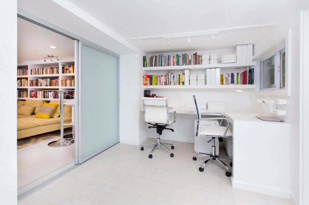 Достаточно часто шкаф, совмещается с компьютерным столом, таким образом получается не только организовать удобное рабочее место в гостиной, но и сделать дизайн комнаты более продуманным и законченным. Иногда комбинированные модели могут скрывать за дверцами небольшой диванчик или даже кровать.