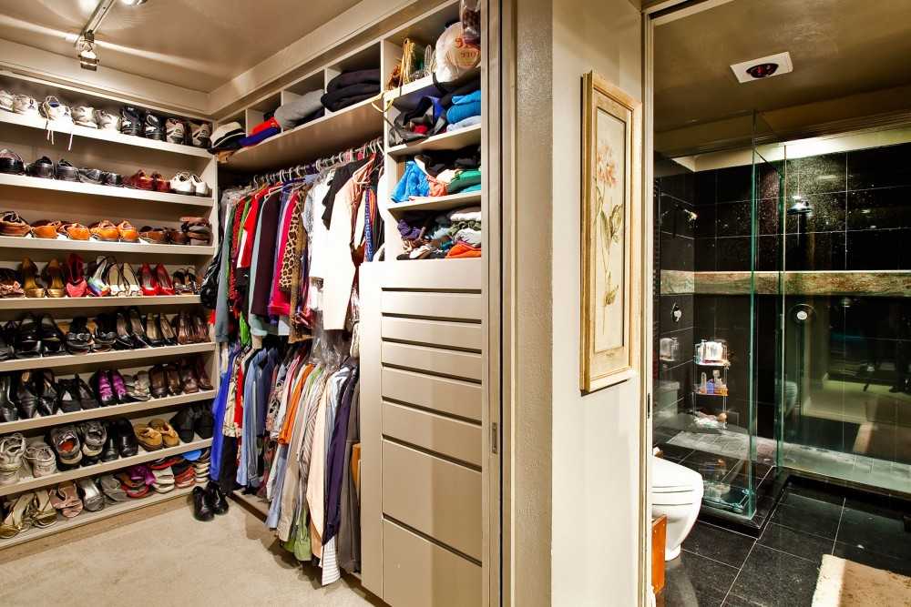 - декоративного освещения в достаточно большом и глубоком шкафу, заменяющим гардеробную, будет мало, точечная подсветка не дает возможности хорошо рассмотреть его содержимое;