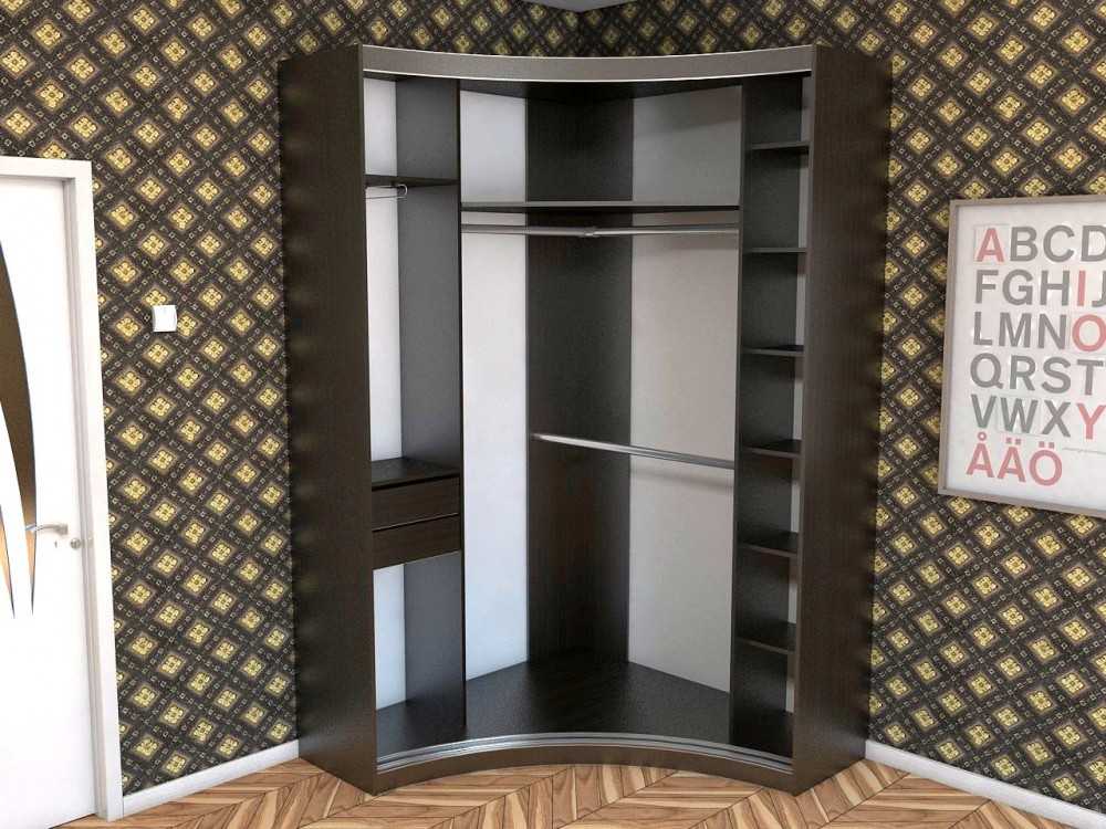 - угловую конструкцию можно установить в любой свободный угол. Обычно эти зоны в комнатах редко используются, поэтому шкаф не будет сильно загораживать пространство комнаты;