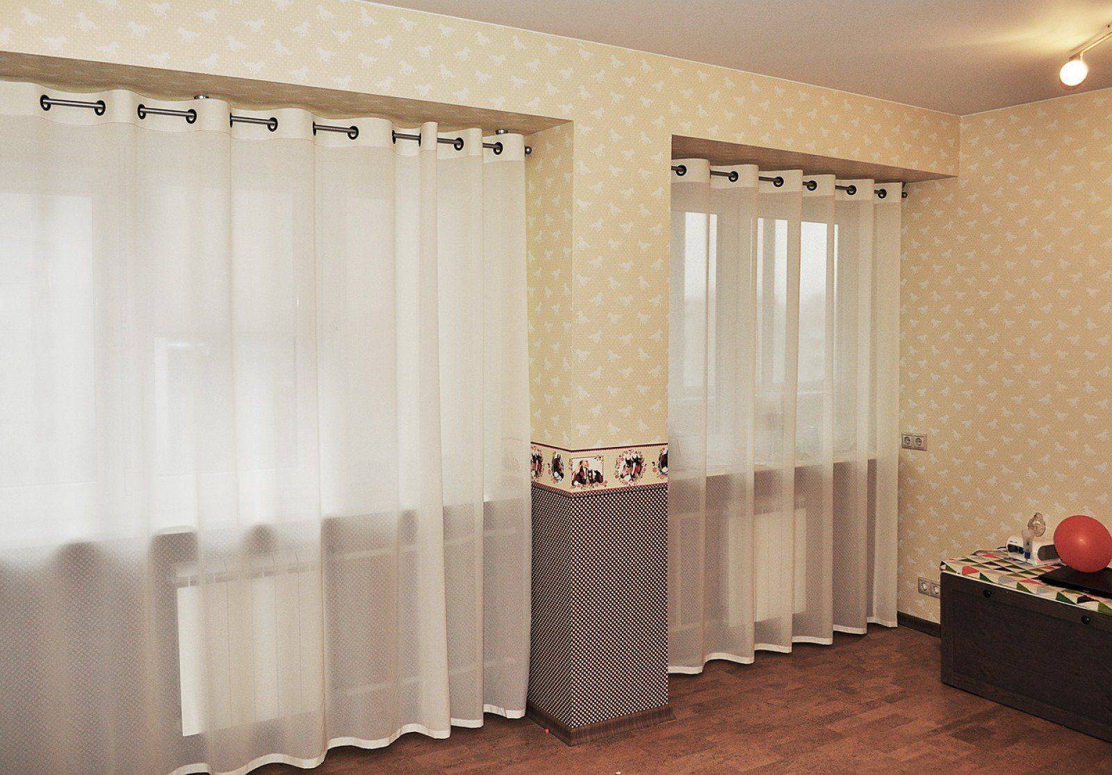 В том случае, если портьеры на люверсах будут не одни на карнизе, также предполагается использовать тюль, рекомендуется подвешивать ее на шторную ленту. Это поможет создать более красивый внешний вид, и при этом повысит функциональность занавесок.