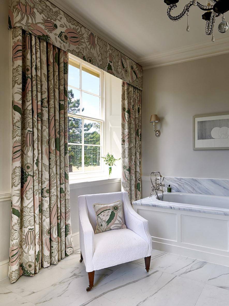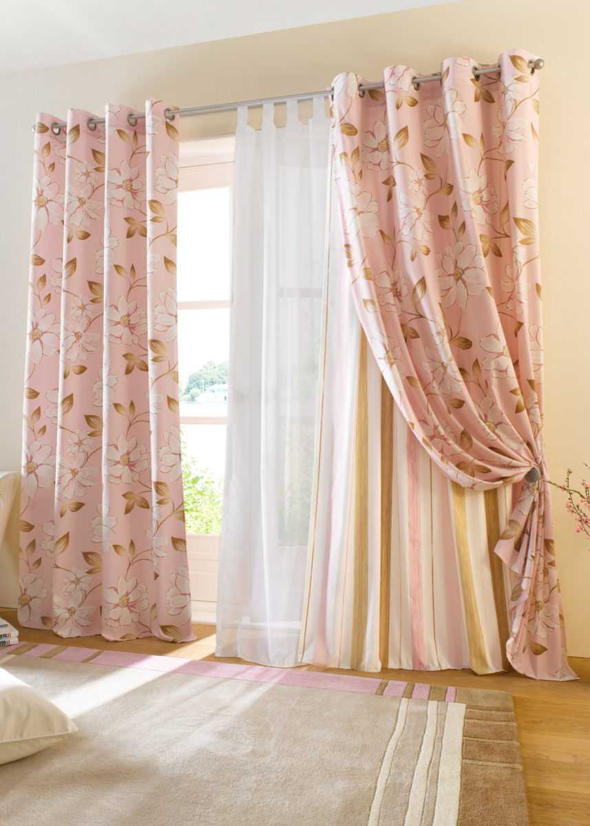 - При возможности, желательно комбинировать рисунок на занавесках с рисунком обоев или покрывал;
