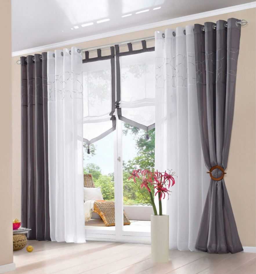 Очень редко можно встретить сочетание тюли с плотной тканью, расположенные на одной перекладине посредством люверсов. Это выглядит очень эффектно, однако подойдет далеко не в каждом случае, лучше всего обходить это решение стороной.