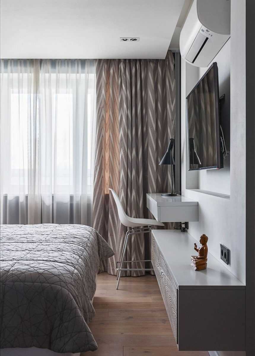 Красивая отделка узкой спальни в современном интерьереИсточник Etevois.ru