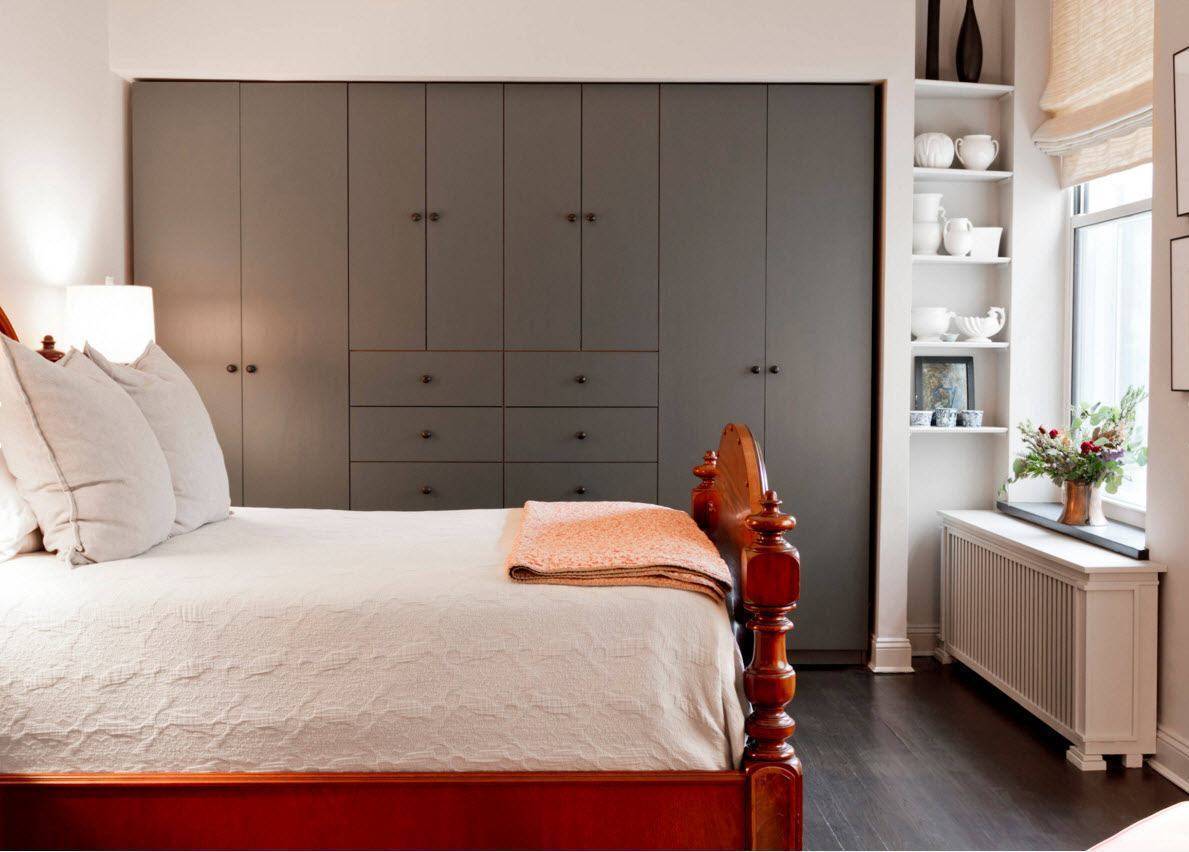 Узкая спальня с гарнитуром под габаритным окномИсточник design-homes.ru