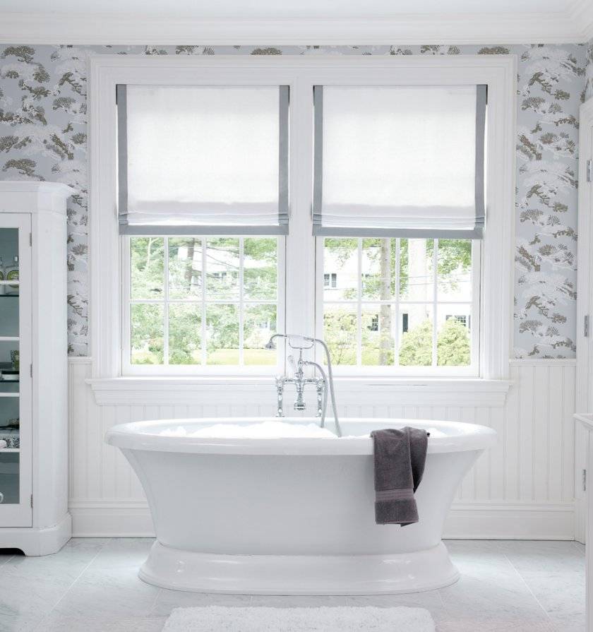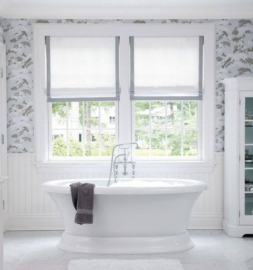 Такие шторы удобны тем, что их легко закрепить и они влагостойкие. К тому же их можно менять, что позволит обновлять интерьер в ванной.