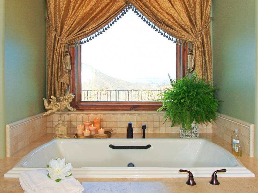 Встречаются ванные комнаты, в которых нельзя проделать окно. Но это не значит, что хозяева не смогут нестандартно оформить помещение. В этом ситуации на выручку придет фальш-окно. Естественно, оно не пропускает свет и выступает в качестве декоративного и стильного элемента интерьера. Если не хватает идей, то просмотрите фото ванных с окном.