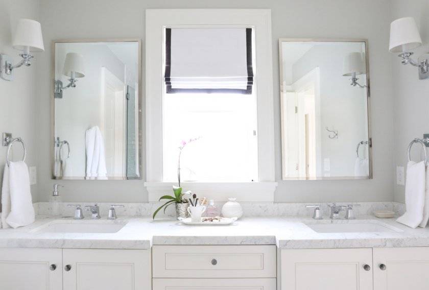 Во-первых, известное правило визуального расширения пространства — использование светлых оттенков. Белый, бежевый, кремовый и другие подобные цвета уместно смотрятся в ванной, подчеркивая чистоту, а также допускают на себе любые другие элементы декора — цветы, орнамент, капли воды, рыбок и т. д.
