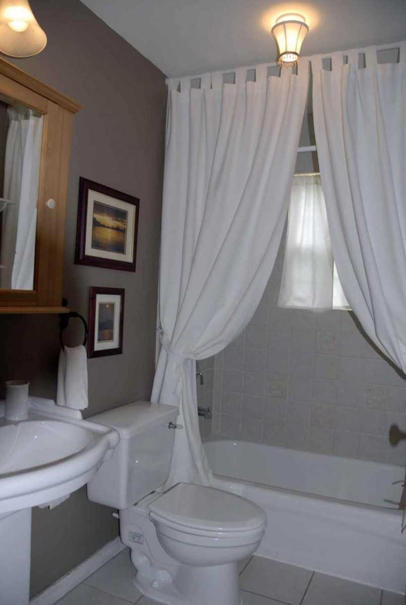 - Уют деревенской обстановки дополнит простая компактная шторка-гармошка. Она ограждает душевую, интересно смотрится на ванной и не загромождает пространство — лучшее решение для маленьких помещений.