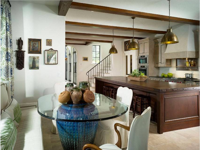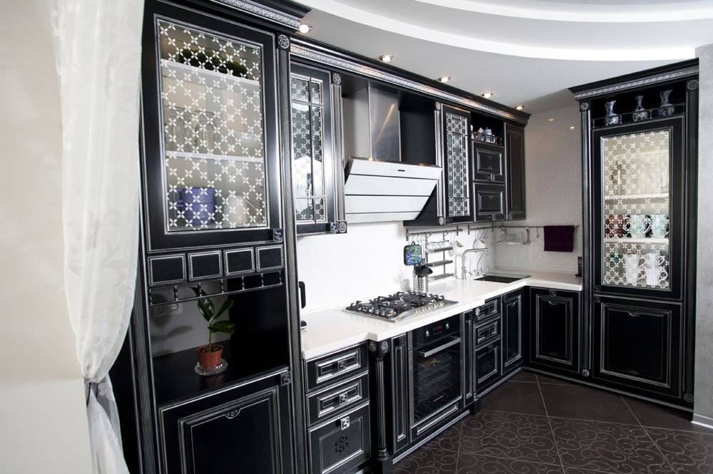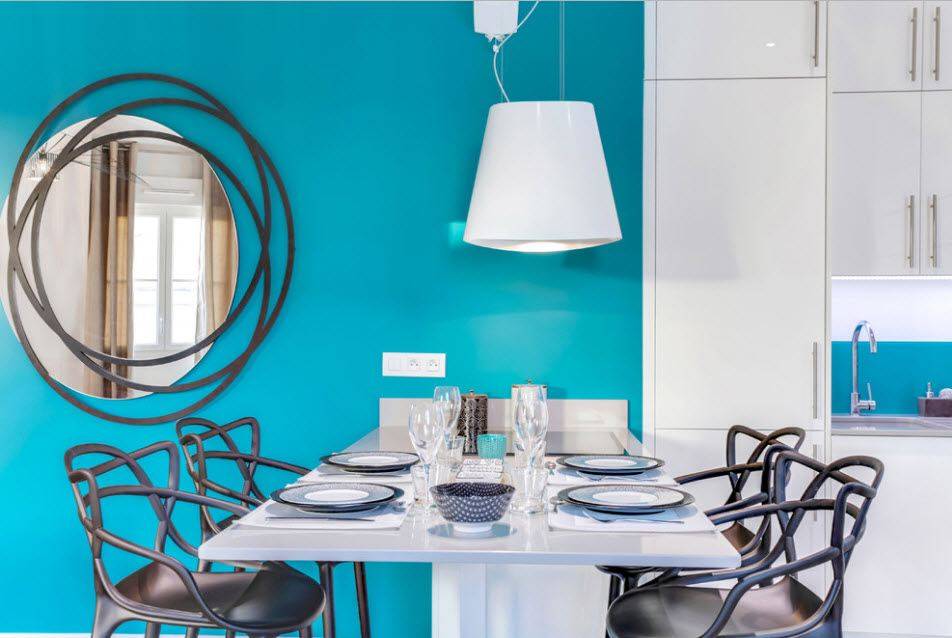 Этот дизайнерский прием следует применять очень осторожно, учитывая прочие особенности кухни, так как при неумелом подходе можно получить обратный эффект и неуютную атмосферу.