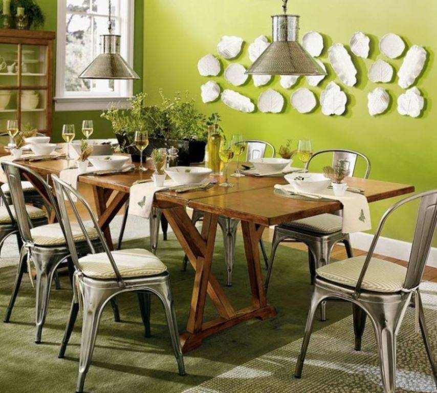 Оформить обеденную зону можно не только при помощи интересного цвета и текстуры, но и декоративными элементами. Их можно купить, а можно сделать самостоятельно. Интересный декор придает помещению уникальность и уют.