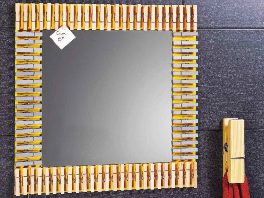 Например, с помощью обычных бельевых прищепок вы можете превратить зеркало в удобную доску для напоминаний. Такая рамка отлично подойдет к интерьерам в стиле кантри или шебби-шик.