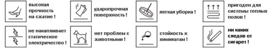 | 23, 33 | Высокая нагрузка 33 – для помещений с высокой проходимостью – бары, рестораны, спортзалы. Можно часто мыть, не боится каблуков и ножек мебели. | Кухня, столовая, коридор. 33 можно стелить даже в ванной. |