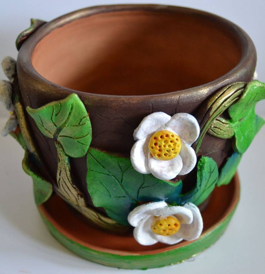 Таким образом, из глины можно лепить не только цветочные горшки, но и емкости для карандашей, вазочки, большие напольные вазы. Внутрь гипсового горшка можно вставить пластмассовый, подвесить его как кашпо на стену, сделав проколы в пластике. Гипс подлежит загниванию, поэтому вставить для впитывания влаги иную любую емкость внутрь нужно в любом случае.