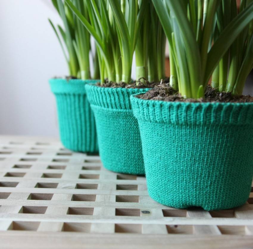 - Можно придать горшкам из ткани и цемента интересную текстуру, используя клей для плитки. Если выбрать качественный морозостойкий состав, можно оставлять горшок на улице зимой.