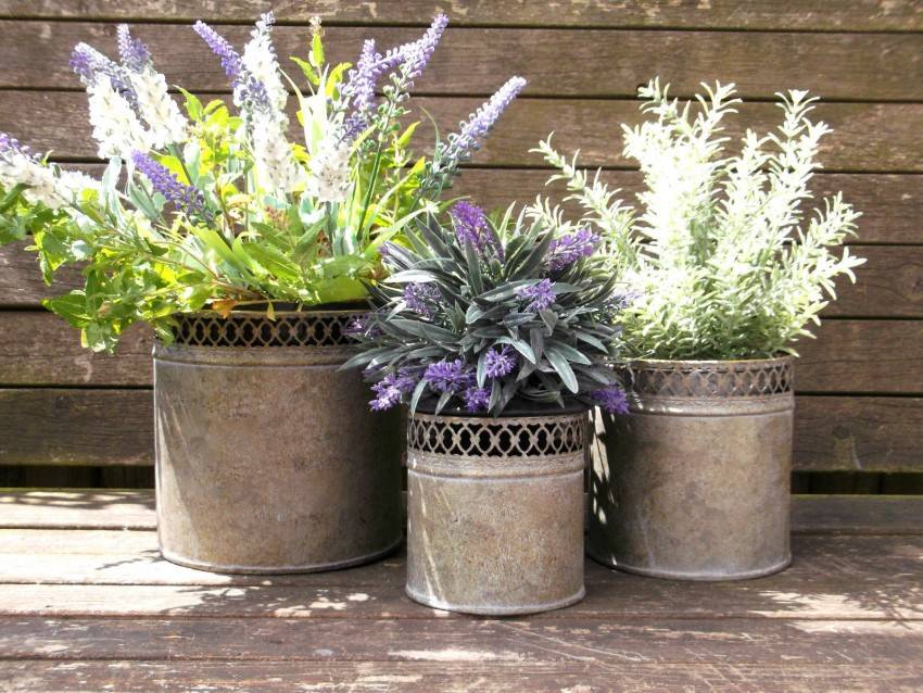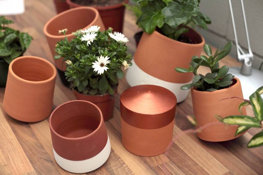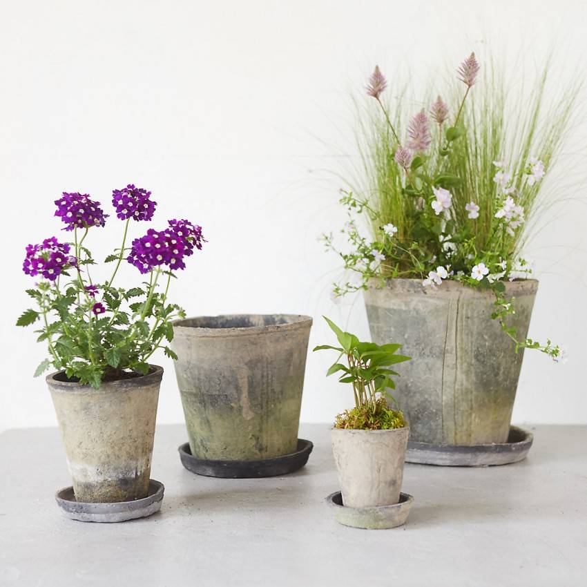 Для минималистичных аранжировок в современном стиле лофт подойдут сырые бетонные горшки без украшений декором, покрытия краской. Для создания романтичных, сельских, ретро садов, можно украсить готовые цветочные горшки различными способами.