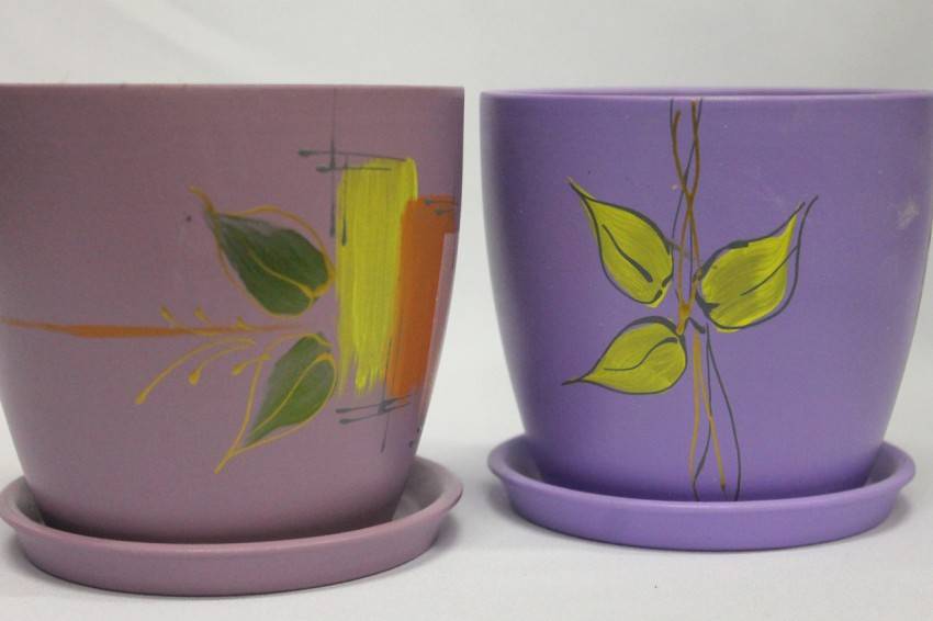Глиняные кашпо целесообразно покрыть яркими акриловыми красками. Но можно обойтись и обычным лаком для ногтей.