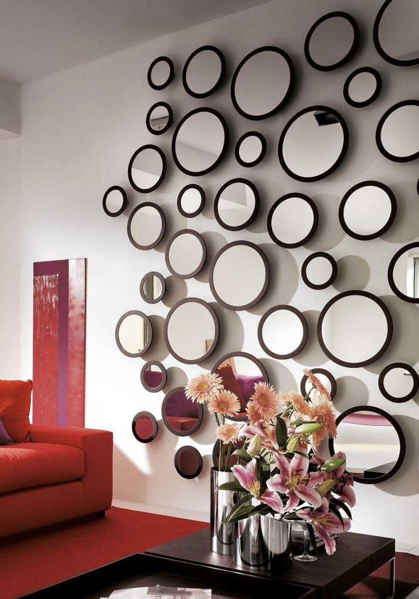 Комнаты украшает мебель, которую тоже можно сделать особенной, дополнив интересными накидками, эксклюзивными подушечками собственного изготовления, уникальным декупажем; ковры (их тоже можно сделать собственноручно из плотной ткани и искусственных ниток, лоскутков, шкурок животных); посуда; сувениры; вазы; растения; картины и постеры; фотографии; зеркала; красивые необычные, в том числе и самодельные, люстры и многое другое.