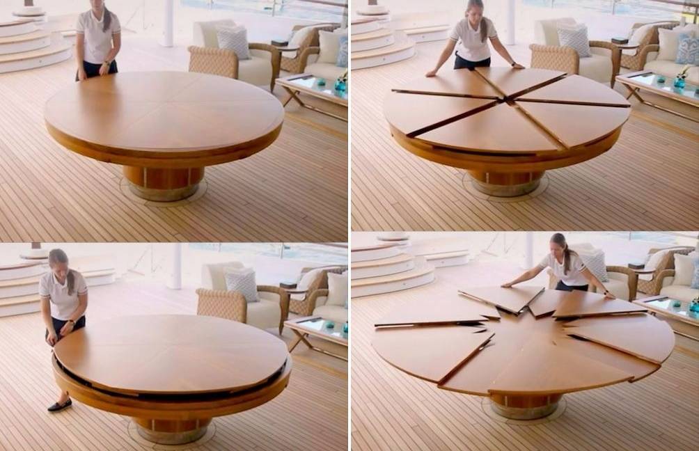 У вас дома часто собирается много гостей? Тогда этот круглый раскладной обеденный стол – прекрасная идея именно для вас! С помощью необычной конструкции дополнительных сегментов можно довольно быстро превратить обычный стол для небольшой семьи в шикарный банкетный.
