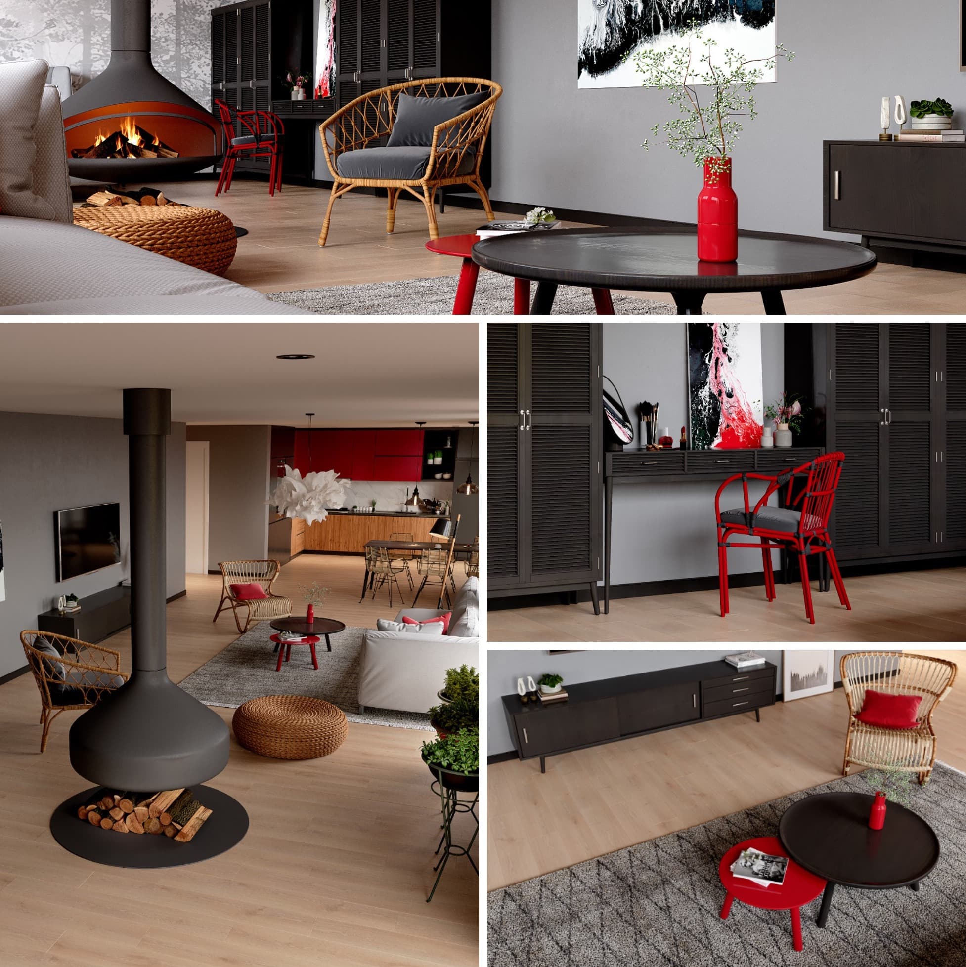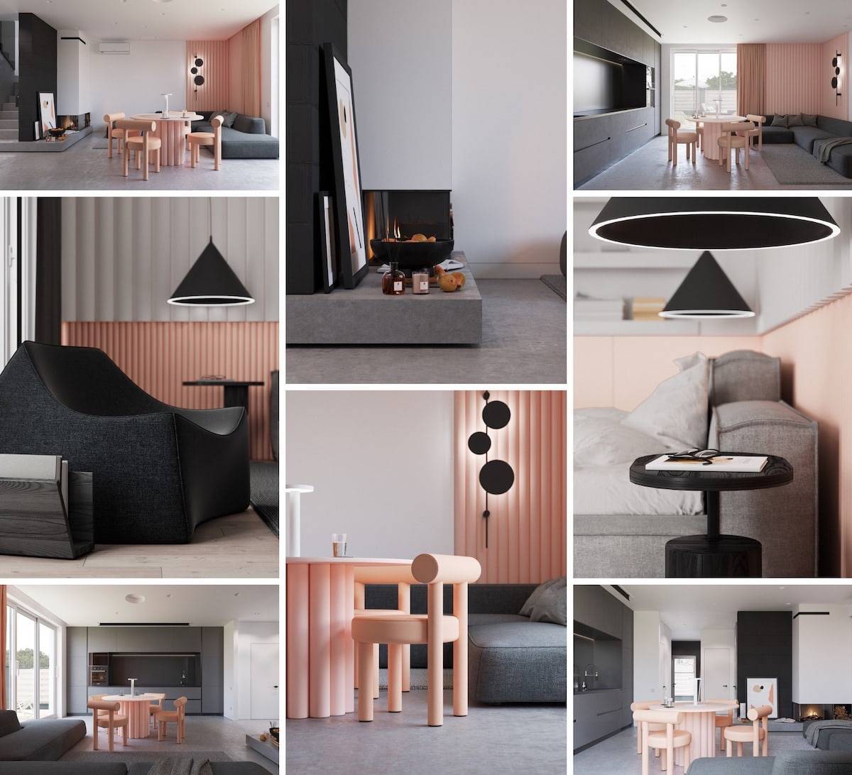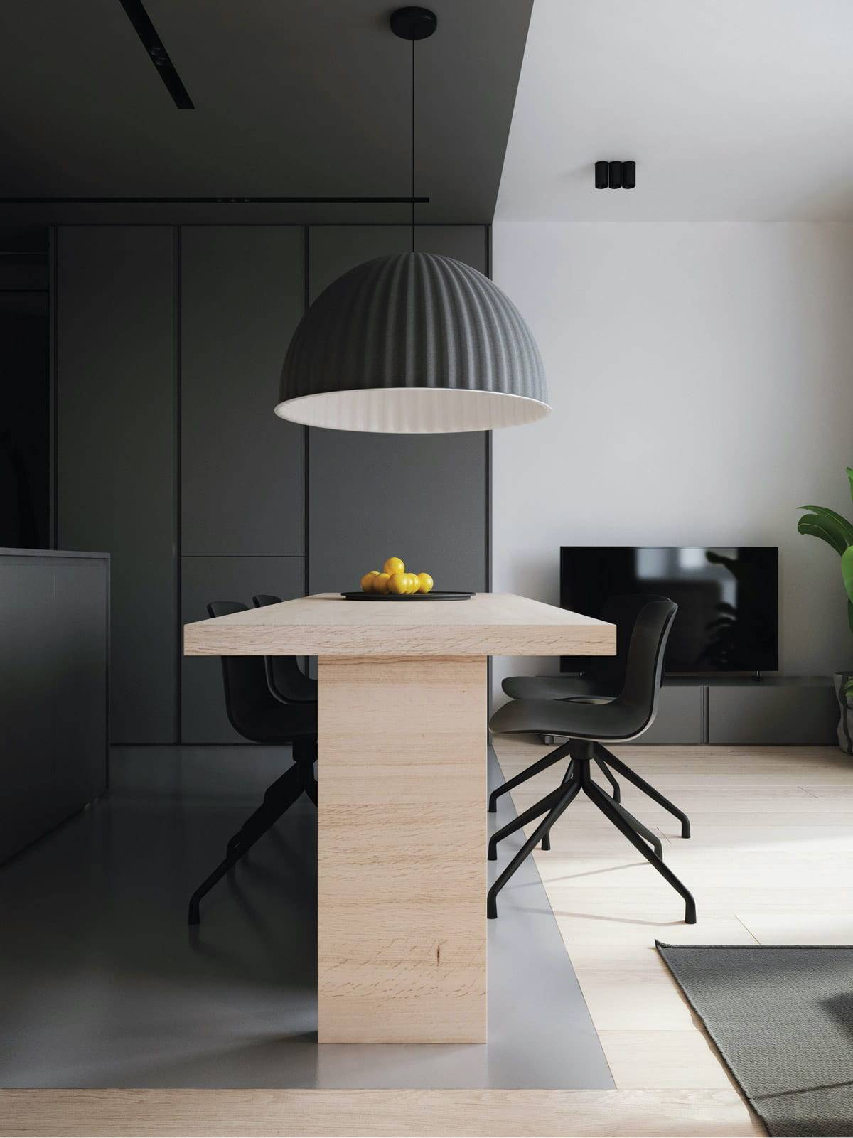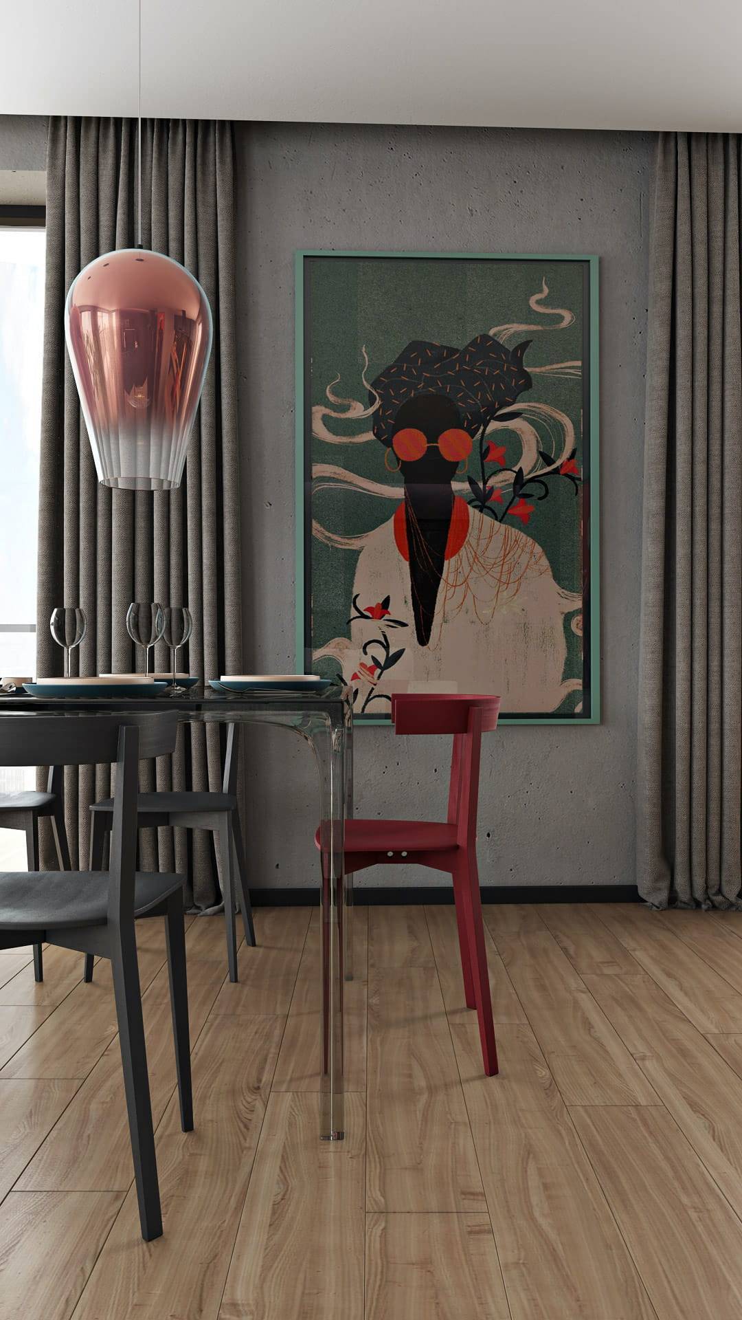 Если серый цвет доминирует на стенах и в обстановке, он гармонично связывает яркие и нейтральные элементы.
