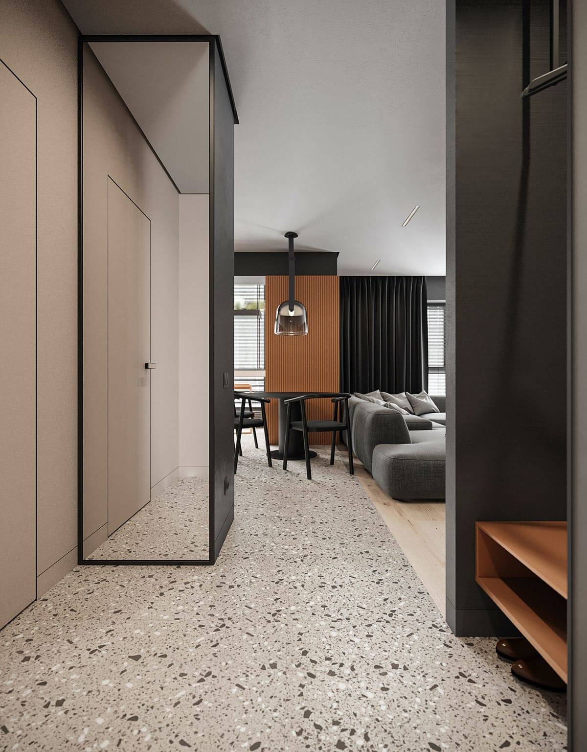 Эффект серого цвета на стенах, полу, в меблировке