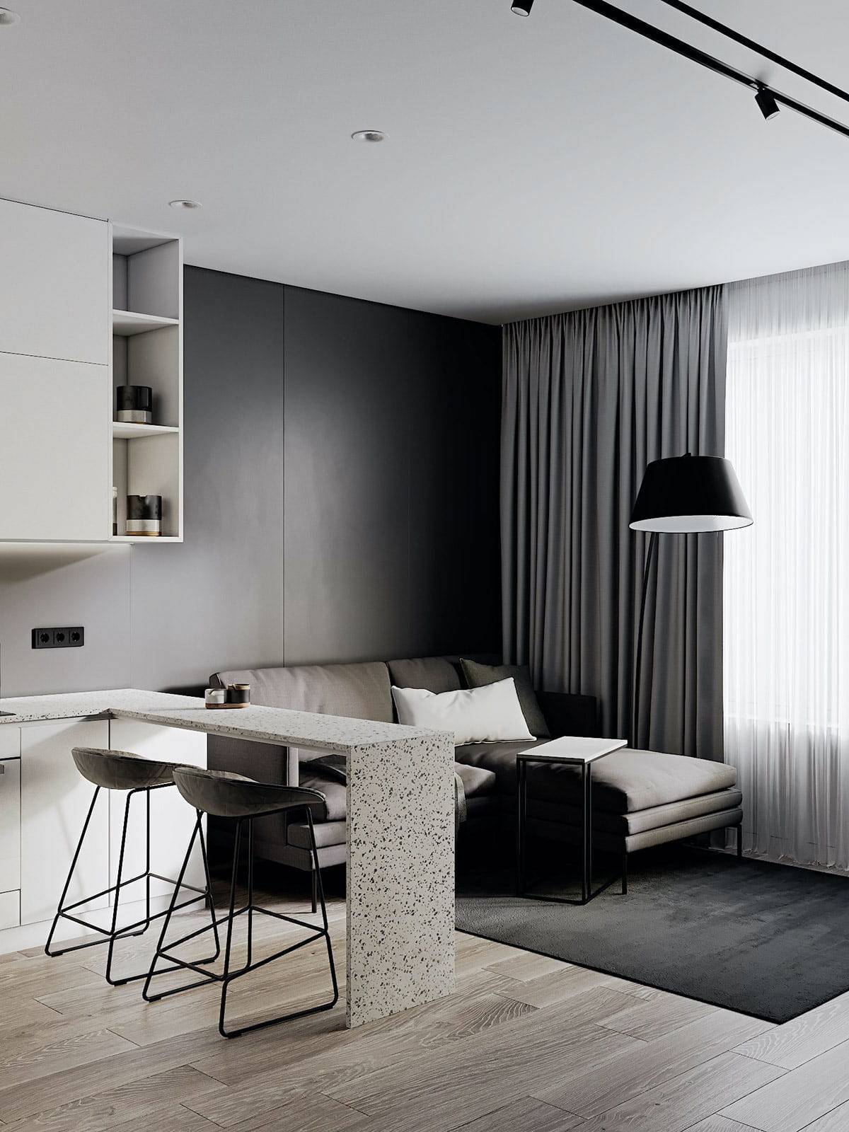 Шведская студия в серых тонах, 45 м² – Необычная и вместительная скандинавская квартирка с маленькими хитростями.
