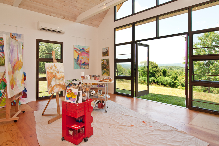 По мнению большинства художников, наилучшим вариантом для мастерской является помещение с выходом на открытое пространство. Это может быть сад, двор или улица. Работа на террасе в прекрасную погоду подарит единение с природой и расширит творческие горизонты. Если позволяет площадь, можно сделать выход на крытую площадку. Таким образом, творить шедевры можно даже в ненастную погоду.