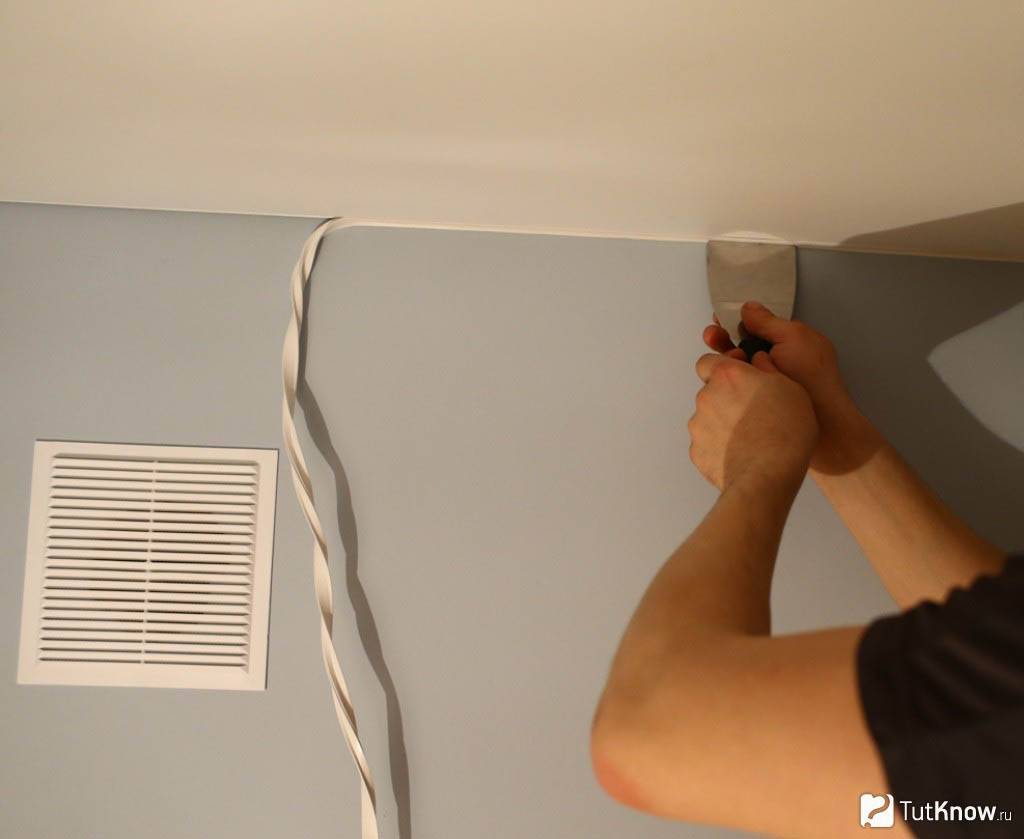 - если на потолке наблюдается отслоение старой штукатурки либо побелки, то необходимо удалить отживший свое слой во избежание риска повреждения уже натянутого полотна;