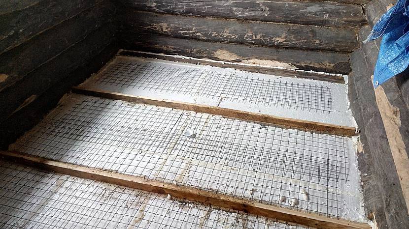 На керамзит укладывают сетку-рабицу или любой другой армирующий материал и заливают вторым слоем цемента