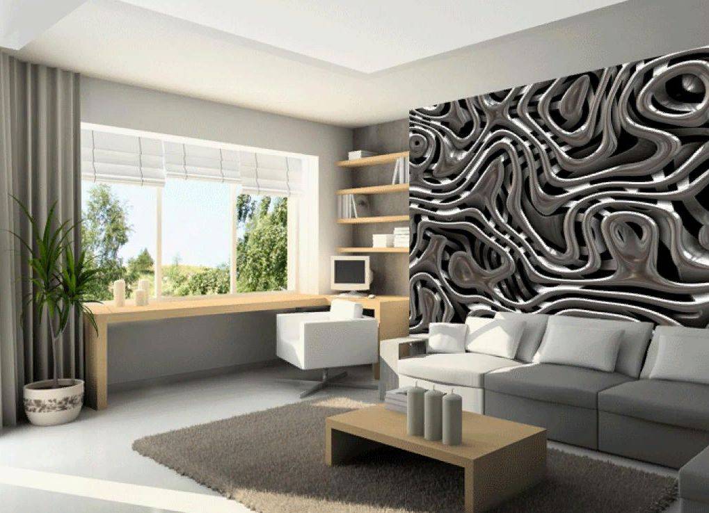 Продаются в стандартных рулонах. Чаще всего используются для зонирования пространства, выделяя одну из зон. Но, тем не менее, существуют варианты дизайнов, когда стандартными 3Д-обоями обклеиваются все стены.