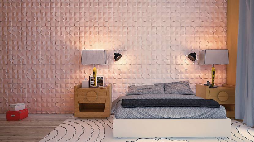 Особенно красиво смотрятся такие элементы у изголовья кроватей, в зоне отдыха. Дополнительных украшений не понадобится. Отличный вариант, чтобы сделать акцент на какой-то из стен. Зонирование актуально для однокомнатных квартир или квартир-студий. По сравнению с обычными картонными перегородками, та же конструкция с 3D панелями в основе выглядит привлекательнее.