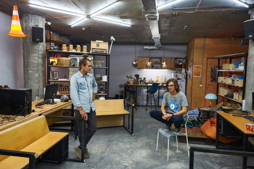 - Посмотрите, куда можно поставить верстаки, стеллажи, мойку, диванчик.