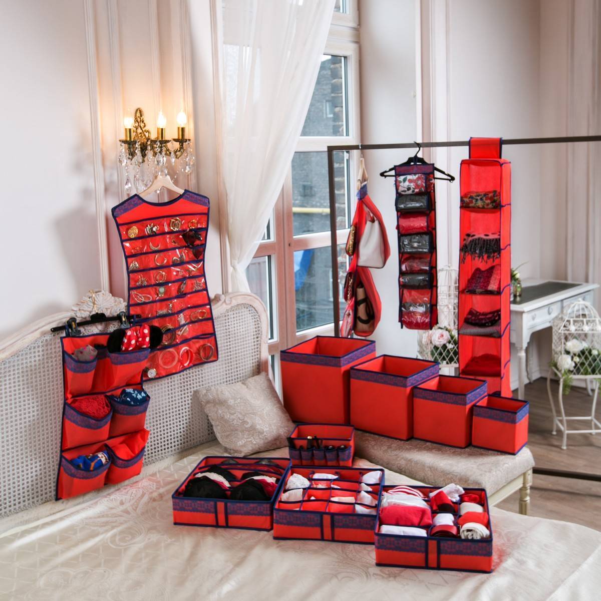 Внутри прозрачных карманов можно хранить что угодно – носки, белье, галстуки, ремни, маникюрные и швейные принадлежности, зарядки и многое другое. Все то, что обычно хаотично свалено в выдвижные ящики и коробки.
