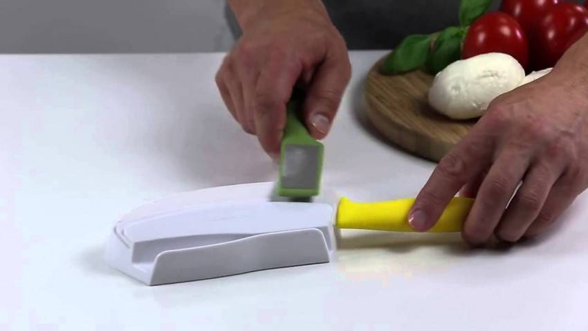 Дешёвые кухонные точилки не подходят для керамики. Пару раз используете их – и смело выбрасывайте нож. Для такой тонкой работы придётся поискать изделие с алмазным напылением.