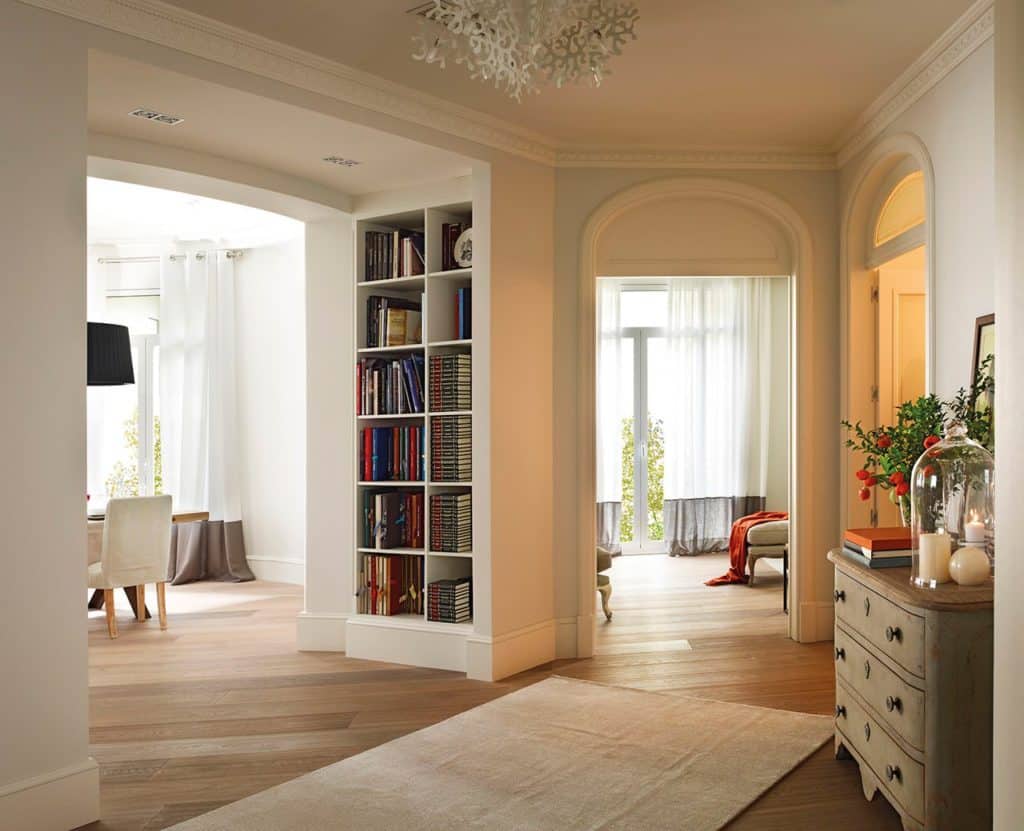 Самое выгодное место для скрытых дверей в доме — коридор или прихожая со множеством входов и выходов. При замене стандартных дверных проемов с наличниками на скрытые, вы получите просторную комнату с аккуратными стенами без лишних акцентов.