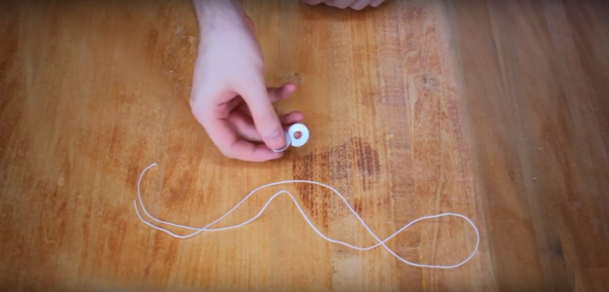 Чтобы высверливаемое отверстие было строго горизонтальным, следует сделать небольшое приспособление, для изготовления которого понадобятся две шайбы и обычная бечевка.