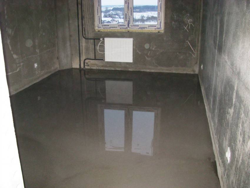 - готовую смесь выливают в дальний от двери угол;