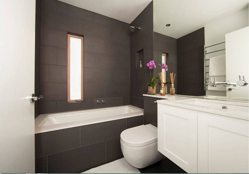 Акцентная темная зона из кафеля добавляет глубины комнатеИсточник www.remontbp.com