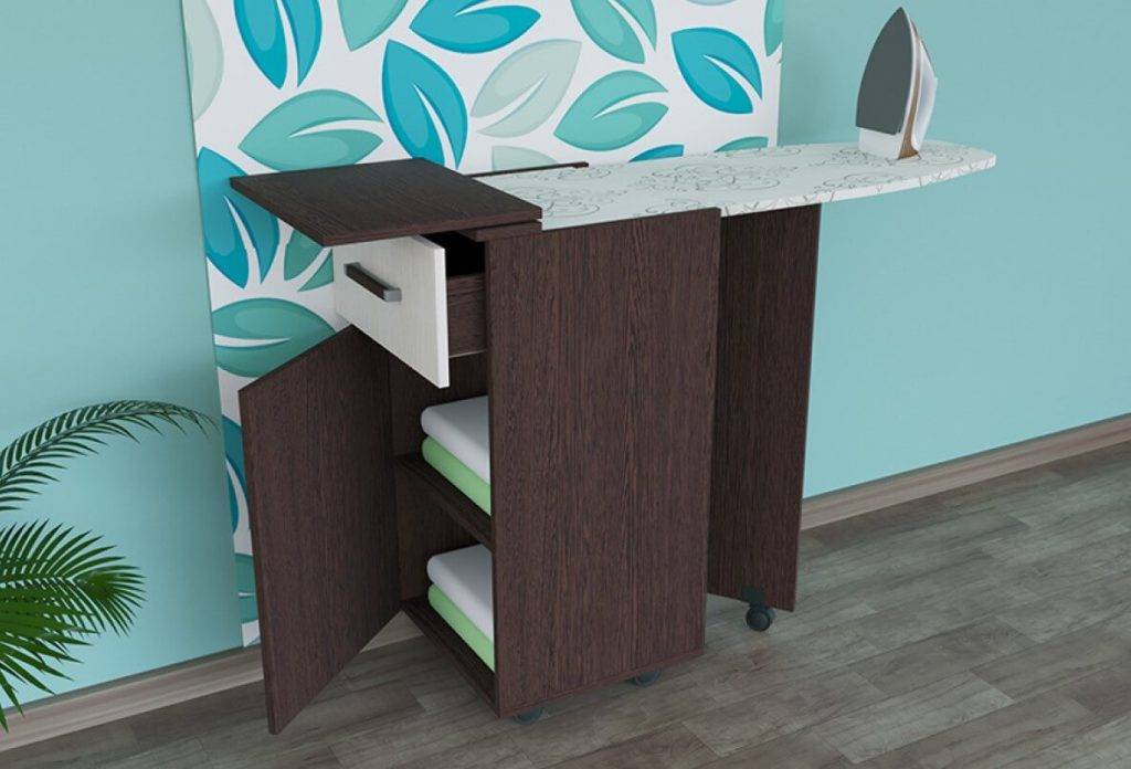 Удобство эксплуатации. Во время глажки нужно просто достать доску из шкафа, а по окончании процесса – спрятать.