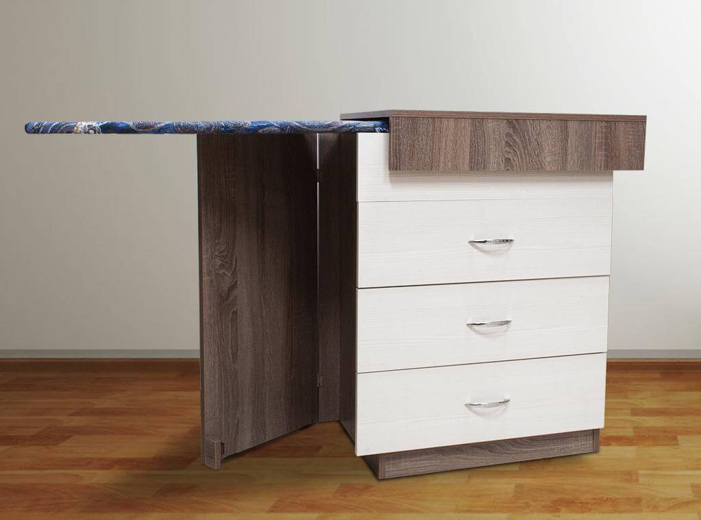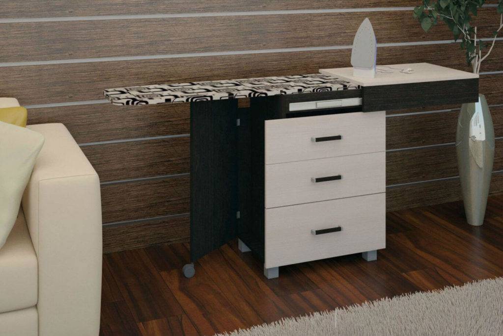 В большинстве домов имеются шкафы или комоды с выдвижными ящиками, куда и можно поместить гладильную доску. Данное решение уместно для небольших досок, что поместятся в выдвижной ящик.