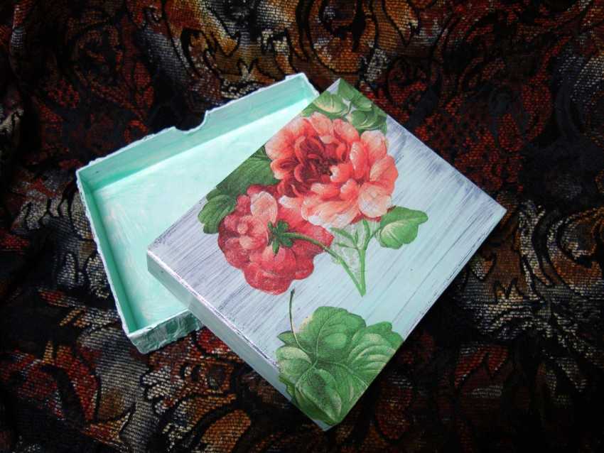 Так можно выполнить декупаж коробок из-под обуви, разнообразных упаковочных коробок.