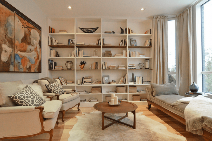 Классика со временем тоже не теряет актуальности. Красиво выглядят помещения, оформленные в английском, восточном и французском стилях. Найти мебель для них очень просто. Так, в помещение в стиле прованс прекрасно впишется незамысловатый стеллаж с открытыми полками, а также изделия, стилизованные под старину с небольшими потертостями и трещинками.