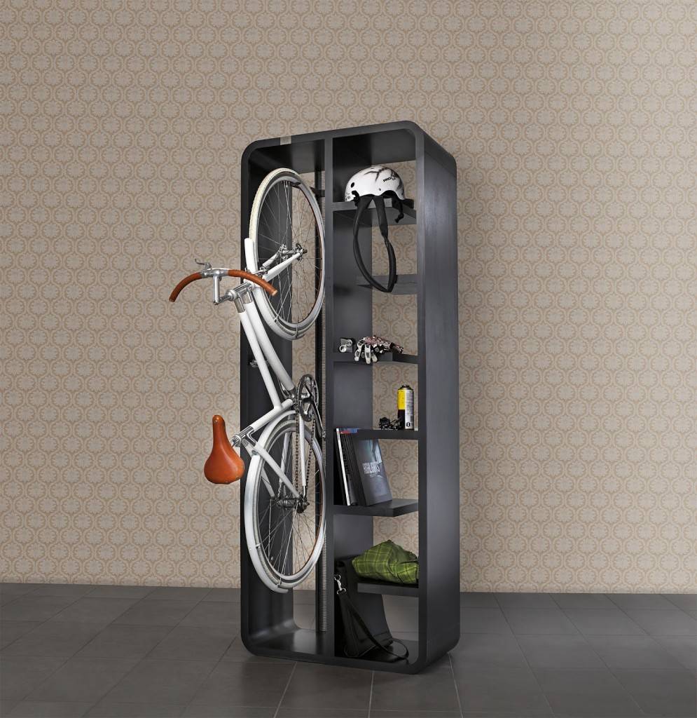 Наиболее удобным и эстетически привлекательным является шкаф, предназначенный для хранения велосипеда и иных принадлежностей: шлема, наколенников, запасных частей и так далее.