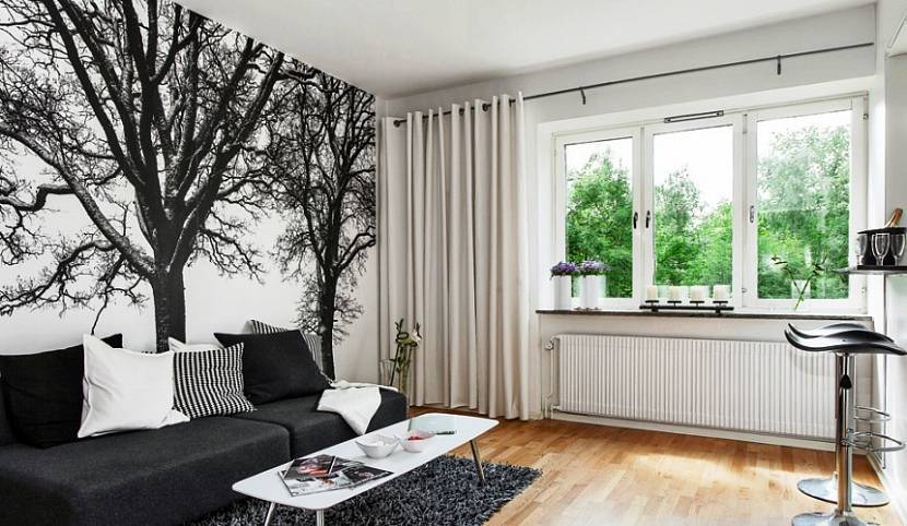 Украшение стены комнаты в черно-беломИсточник zhitiebitie.ru