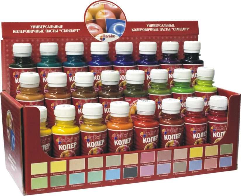 Смешивание колера с ЛКМ не проводится спонтанно. Его выбор делается на основании типа ЛКМ: