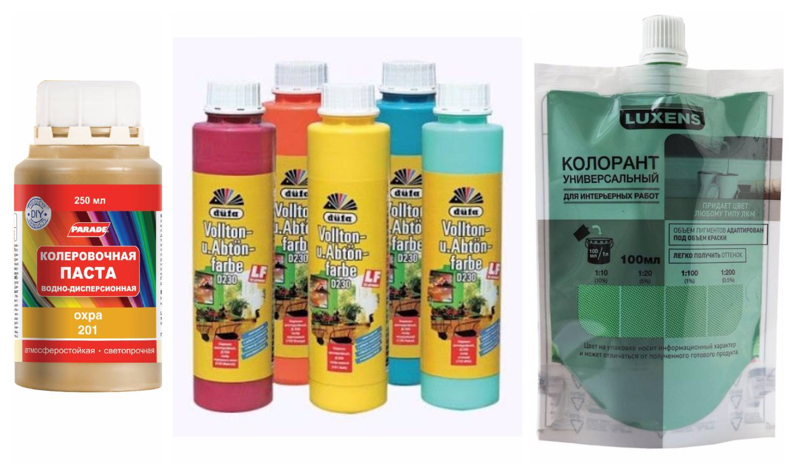 Смешивание колера с ЛКМ не проводится спонтанно. Его выбор делается на основании типа ЛКМ: